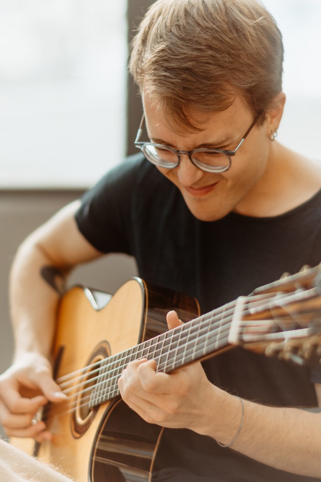 Marc spielt Fingerstyle Guitar! Packend rhythmische und eingängige Songs – stilübergreifend und 100% handgemacht. Seit 25 Jahren in unzähligen Bands Musicals und kleinen Formationen tätig, widmet er sich seit 15 Jahren auch der Instrumentalgitarre. Hierbei können Sie in die Welt der „Fingerstyle Guitar“ eintauchen: eine Mischung aus Blues, Jazz, Boogie, Country und Balladen im Stil von Chet Atkins, Tommy Emmanuel oder Jerry Reed. Gelegentlich fließen auch gesungene Lieblingslieder ein, welche die stilistische Reise erweitern. » zur Homepage